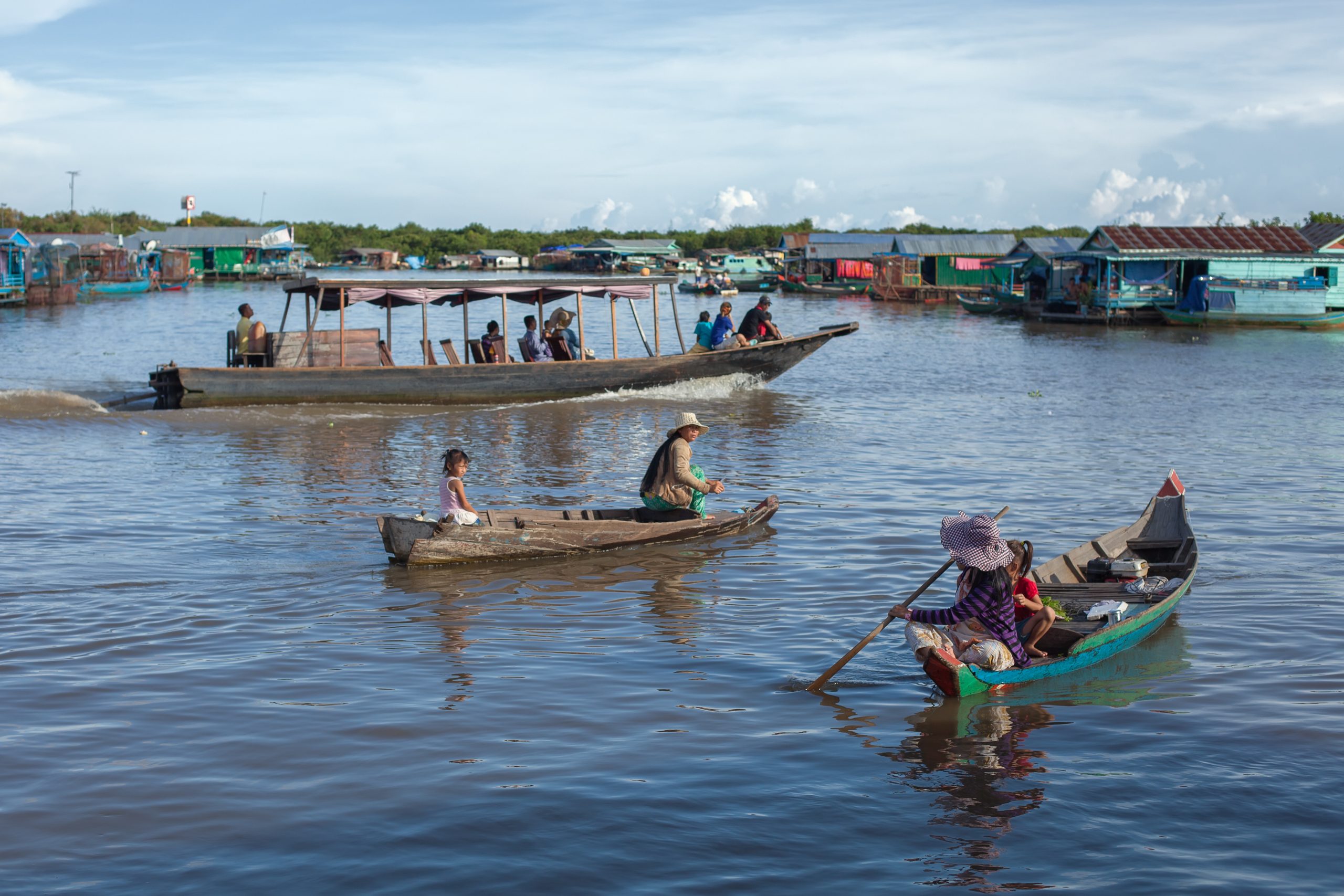 You should visit Tonle Sap Lake in the afternoon and enjoy the beautiful sunset on the lake.