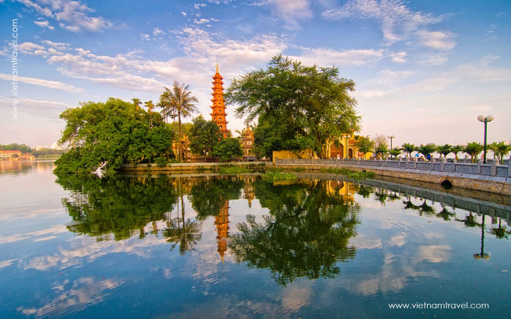 West Lake was created from a curved part of Red River and appeared in several Vietnamese legends. One legend suggests that West Lake was shaped after the battle between Lac Long Quan and a nine-tailed fox spirit, that’s why the lake was once called “Fox Corpse Swamp”. Another folk story claimed that original name of the lake is “Golden Buffalo Lake” because it was formed from struggle of a buffalo after the disappearance of her calf. In the 11th century, the lake was named “Foggy Lake” from its misty condition and ultimately its name was changed to “West Lake” in 1573 to avoid the given name of King Le Thanh Tong.